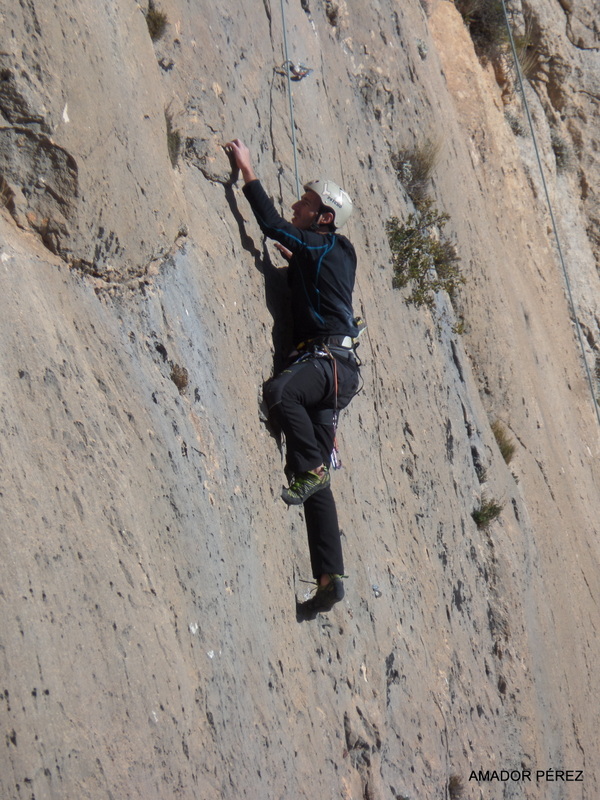 Mientras les dejaba para bajar a Vélez-Rubio a comprar un medicamento porque mi peque estaba enfermo, Miguel y Joaquín colocaban en top rop la vía el Zorro se esconde que escalaban varias veces. Al volver nos dirigimos a la pared de la izquierda para probar por primera vez también la vía "Pérez-Morales", que habíamos equipado el sábado anterior Dioni y yo.