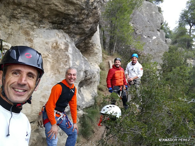 David en la ferrata y no paraban de llegar personas para realizar la actividad.